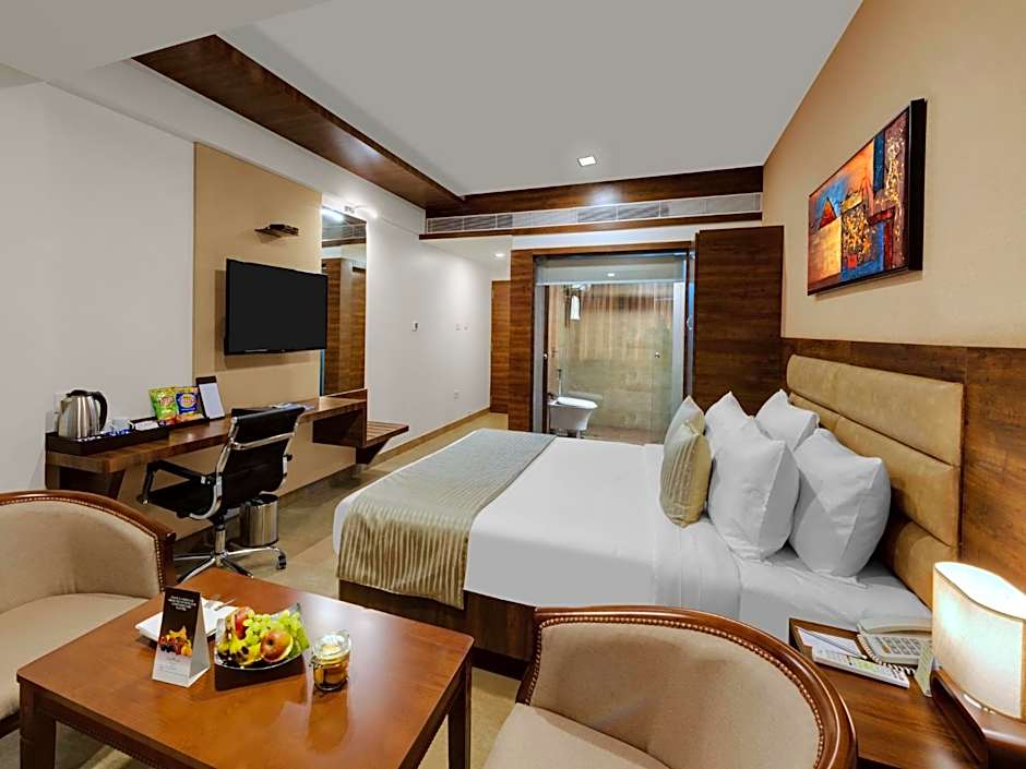 The air-conditioned suite provides a flat-screen TV, soundproof walls, executive lounge access, a seating area as well as garden views. The unit offers 1 bed.